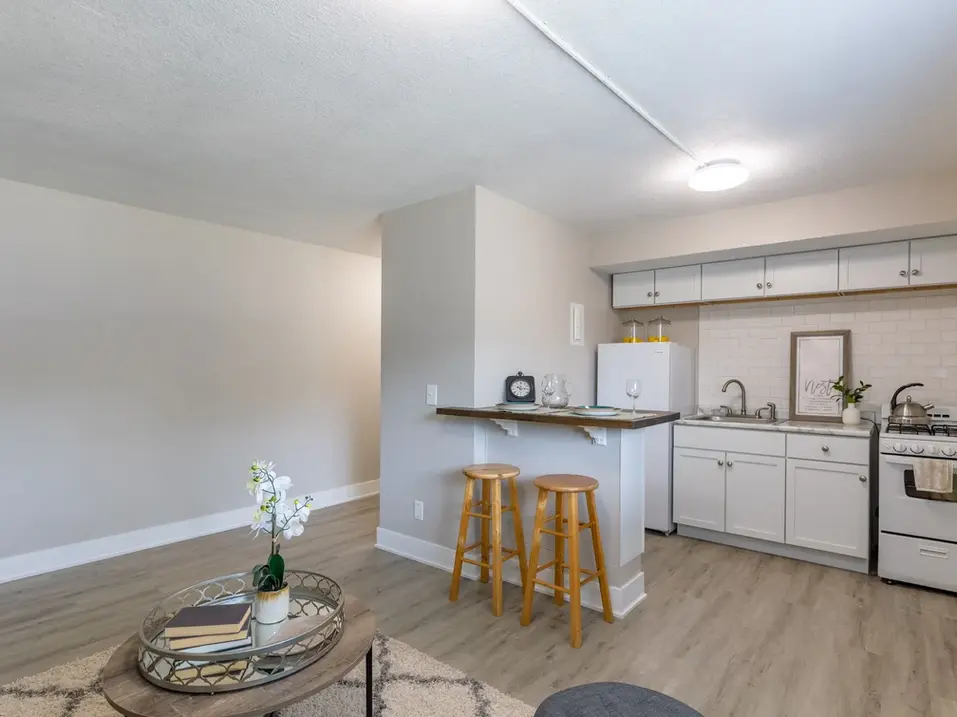 Our one-bedroom units are ideal for students, couples, and anyone who values having their own private space. Each layout includes a separate kitchen and living room, perfect for hosting guests or enjoying extra room to relax. All one-bedroom units have been recently remodeled to offer modern style and comfort, and we provide three distinct floor plan options to help you choose the one that best fits your needs.